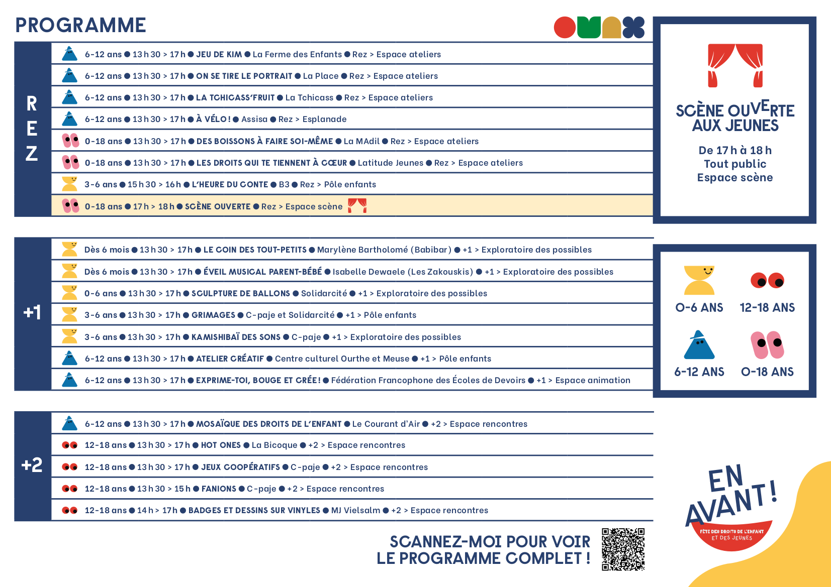 De 17h à 18h, place à la scène ouverte des enfants et des jeunes : chorégraphie, slam, chant, vidéo, sketch… Toutes les propositions « format court » seront mises à l’honneur ! Si vous souhaitez rejoindre la scène, il n’est pas trop tard : contactez jonathan@c-paje.be